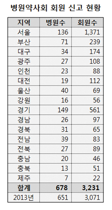 지난 2013년에는 651개 병원 3,071명의 회원이 정회원으로 신고했고, 올해는 모두 678개 병원 3,231명이 정회원으로 신고한 것으로 집계됐다.