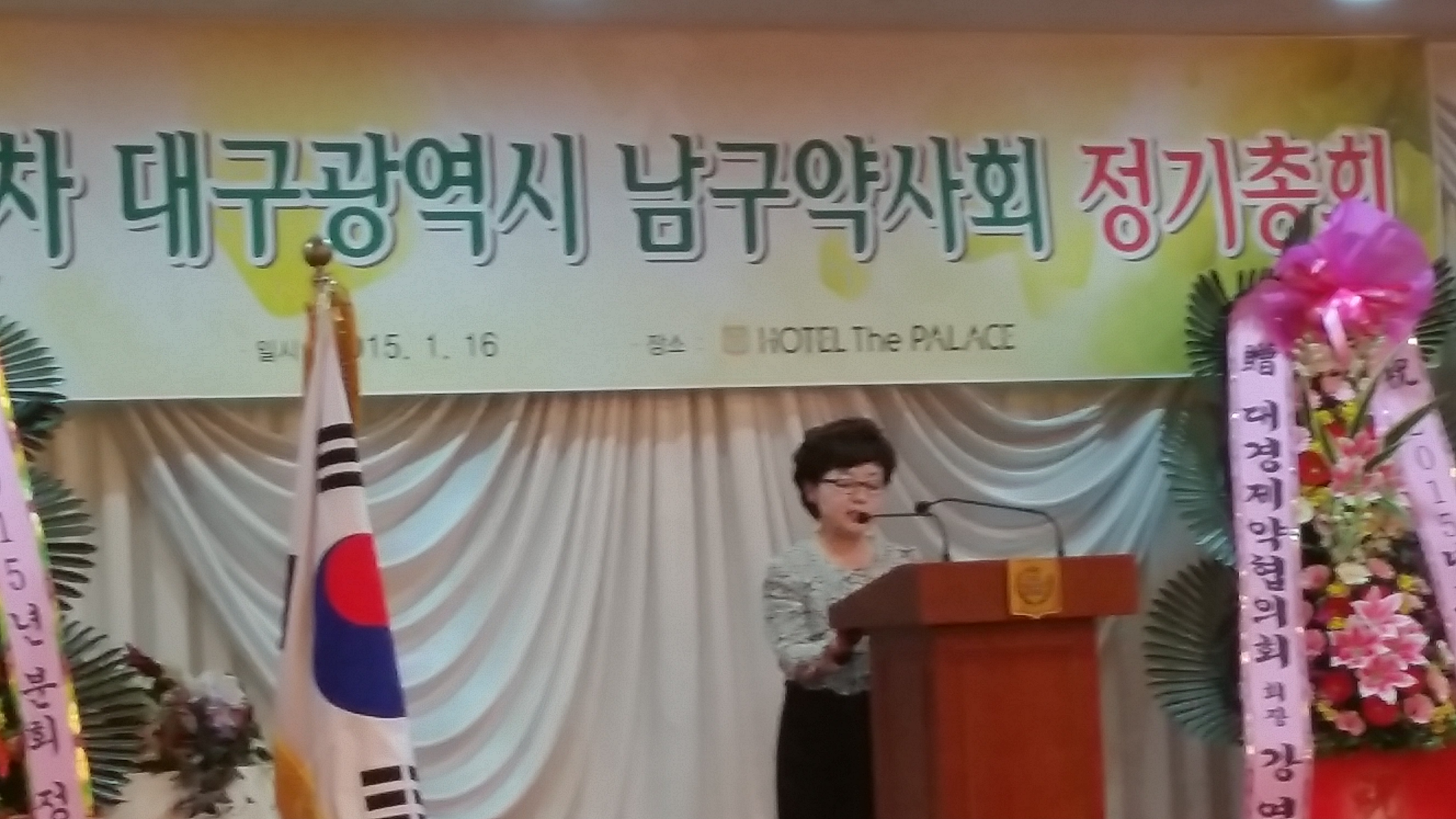 윤애란 회장은 “대구 8개약사회 중 2번째로 작은 약사회이나 신상신고율 100%이며, 회원들 간 단합은 타분회의 추종을 불허한다”고 말하고, "2014년 11월 15일 약업신문 주최, 대구시약사회 후원, 유한양행 협찬 '약국경영대상'에서 한아름옵티마약국의 양현국 약사가 대상을 수상했으며, 제일약국 김선홍 약사가 동상을 수상했다”며 축하했다.