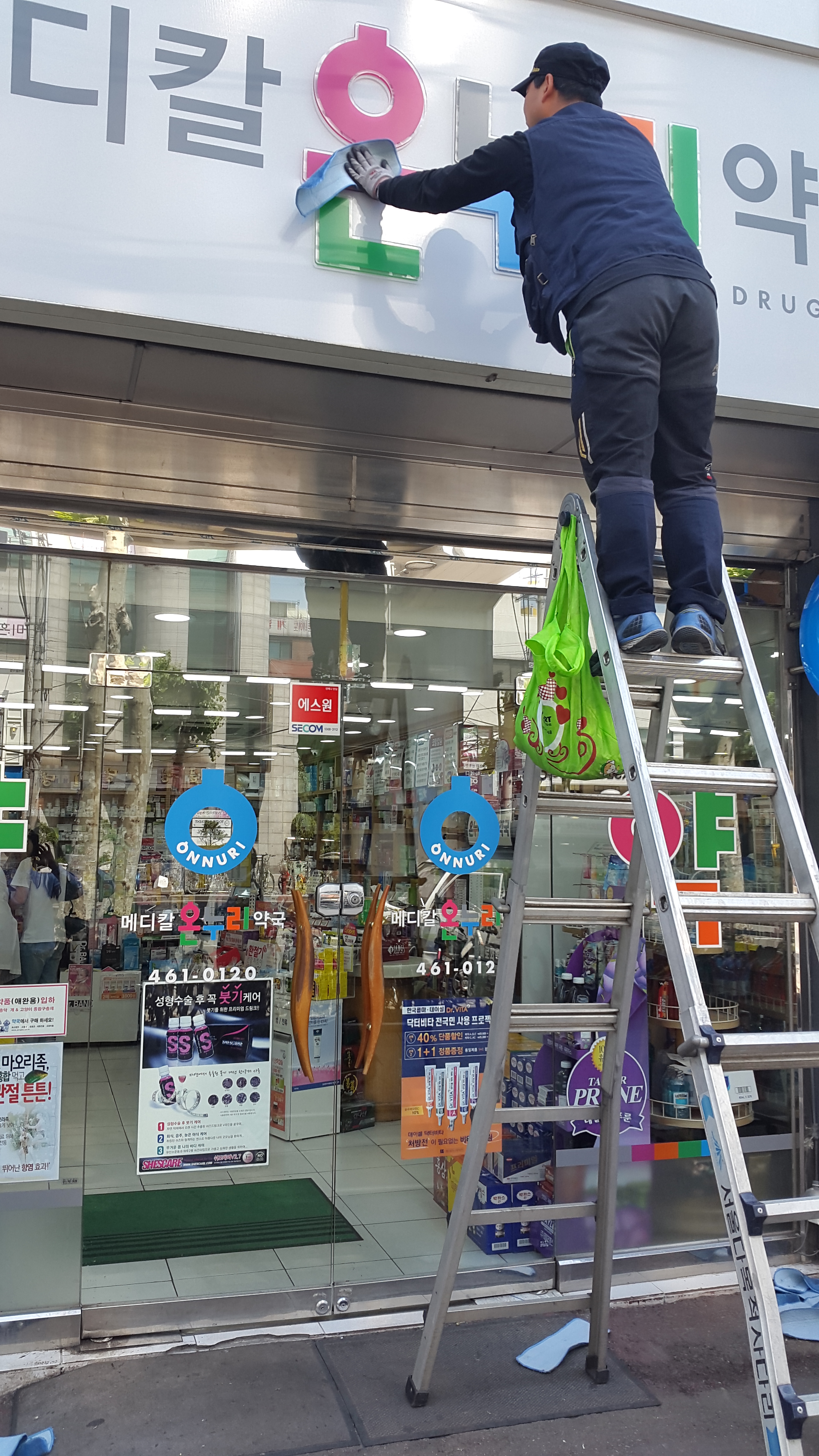 광진구약사회(회장 조영희) 약국위원회(부회장 김경훈, 약국이사 김영숙)는 약국경영활성화의 일환으로 관내 회원약국 간판 및 유리창을 무료로 청소해주는 '약국클린사업'을 실시하고 있다.