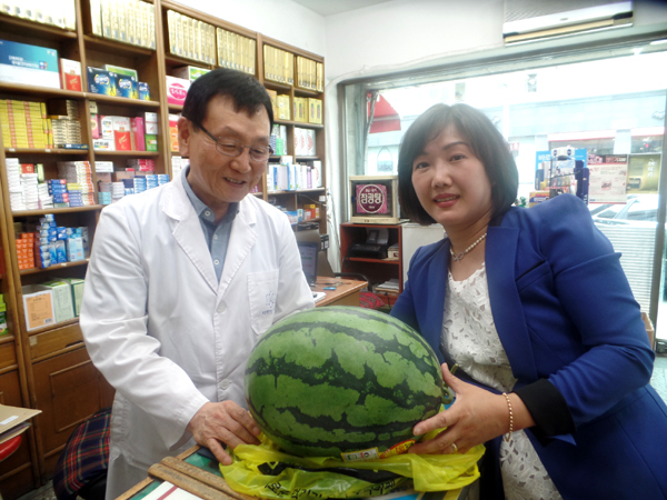 최미영 회장은 "약국 뿐만 아니라 대한민국 전체를 뒤흔든 메르스 사태에도 최일선에서 확산 방지를 위해 최선을 다해 준 회원을 격려하기 위해 초복이 얼마남지 않은 시점에서 수박을 준비하게 됐다"고 설명했다.