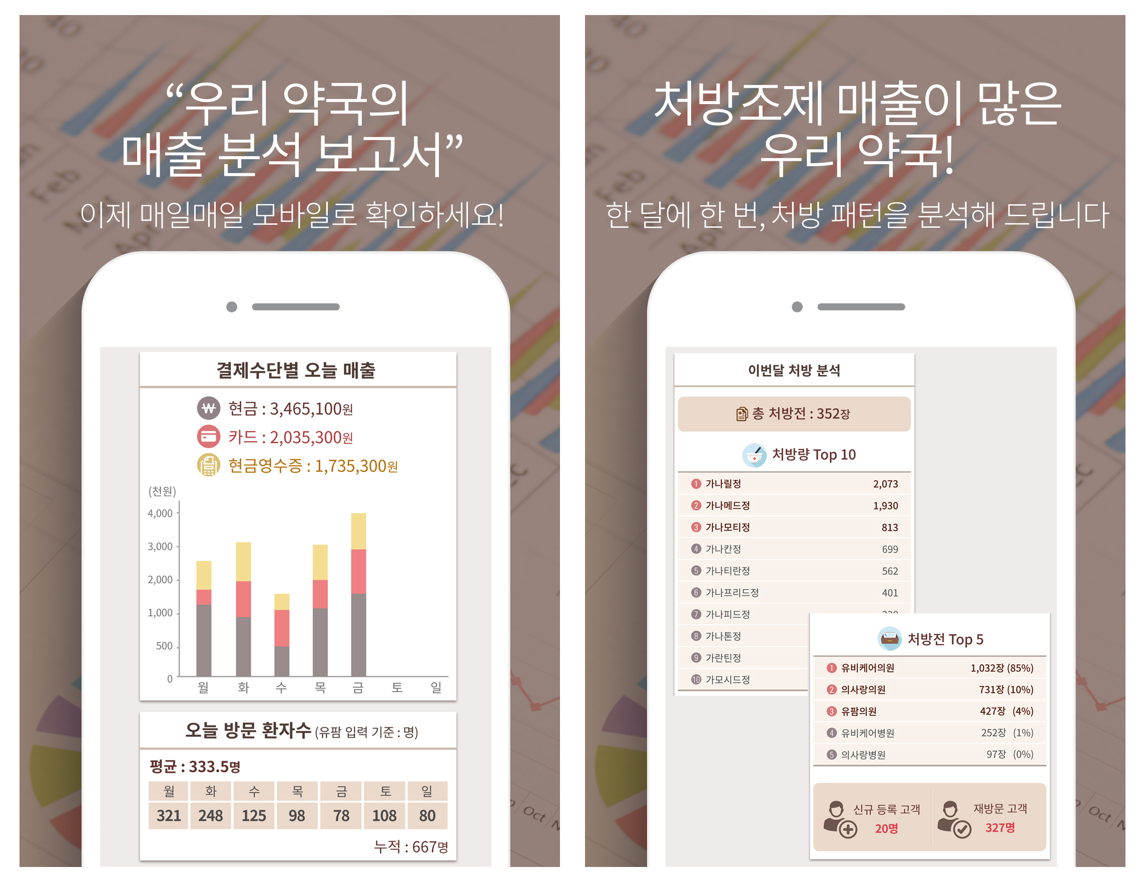 이에 따라 약사는 장소에 구애 받지 않고 스마트폰을 통해 약국의 전반적인 경영 현황을 확인할 수 있다. 또한 매월 처방량과 처방전 유입처에 대한 간략한 분석 정보가 함께 제공되므로 약국 진료 효율화의 효과를 기대할 수 있다.