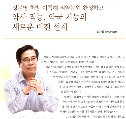 대한약사회 조찬휘 회장은 최근 발행된 대한약사회지 가을호 권두칼럼을 통해 이러한 부분을 강조했다.