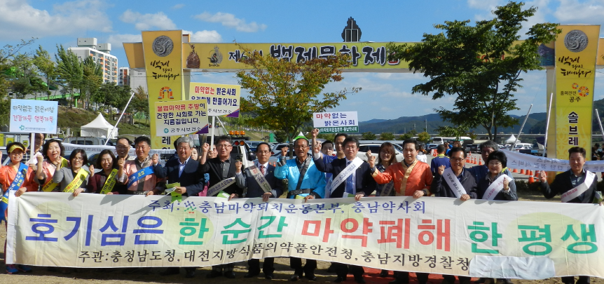 공주신관공원 주행사장 일원에서 충남약사회와 충남마약퇴치운동본부는 대전지방식품의약품안전청, 충청남도청, 공주시보건소 공무원들과 함께 '불법마약류퇴치운동'을 현수막, 어깨띠, 피켓을 이용, 다양한 홍보물(부채, 볼펜, 물티슈, 주방용품 및 마약관련 홍보인쇄물) 등을 배포하며, 지역민과 관람객들을 대상으로 마약에 대한 경각심을 일깨워주는 캠페인을 대대적으로 홍보했다.