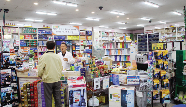 약국 인근에 신경외과와 통증외과, 옆 건물에 또다른 약국이 같이 있는 내과가 있다. 시장이 인접한 입지를 반영하듯 일반의약품 매출 역시 적지 많다. 특히 장이 서는 장날(3일·8일)에는 과부하가 걸릴 정도로 손님이 많은 편이다.