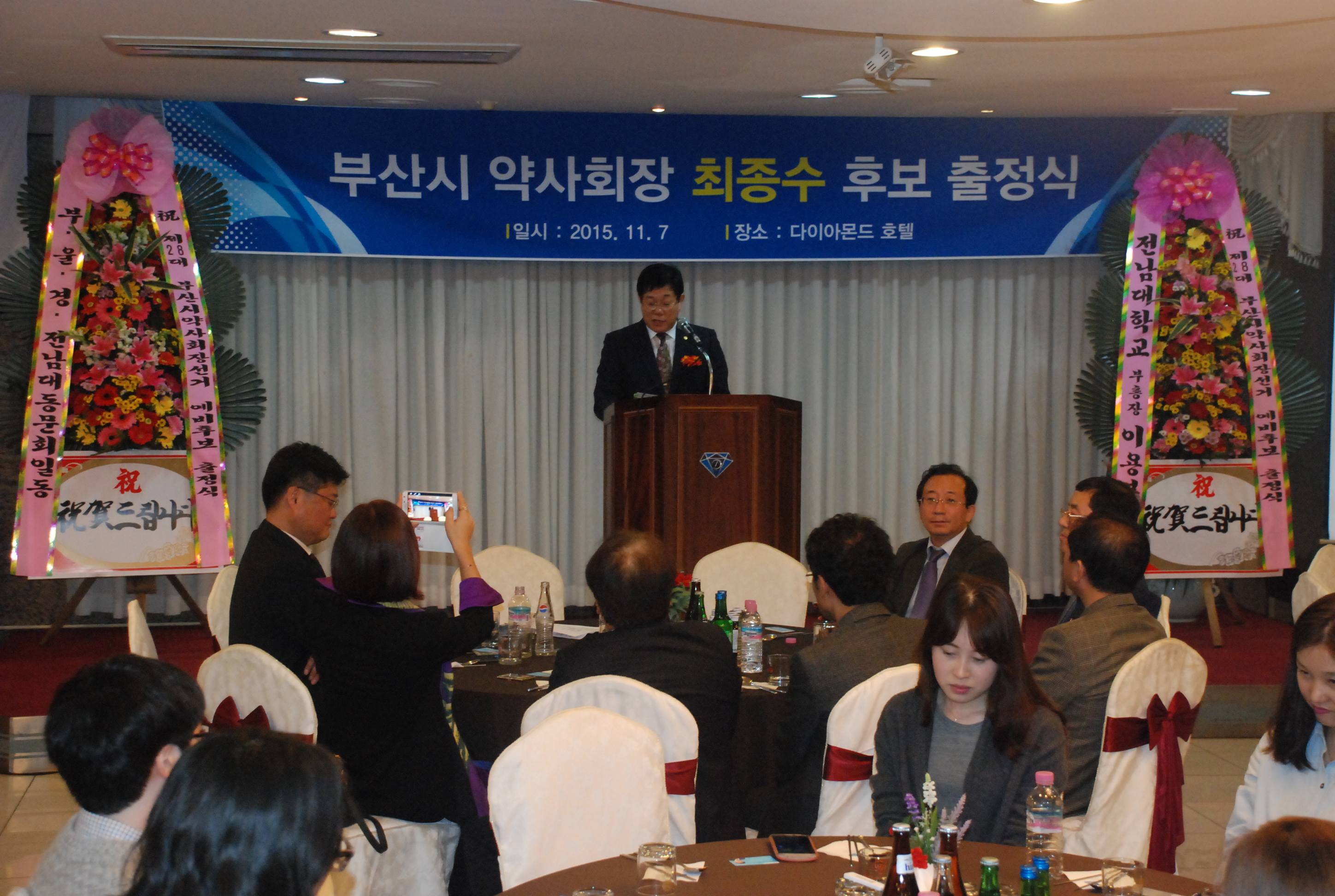 부산광역시약사회장 선거를 앞두고 지난달 22일 출마선언 한 최종수 동래구약사회장이 지지자 100여명이 참석한 가운데 가장 먼저 출정식을 개최했다.
