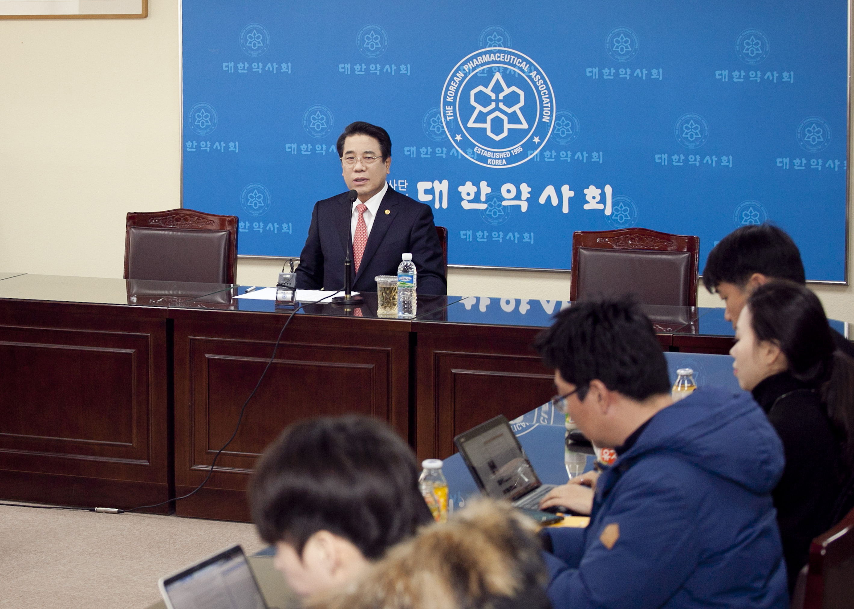 지난 12월 선거에서 차기 회장으로 재선에 성공한 대한약사회 조찬휘 회장이 13일 회장 당선 이후 처음으로 출입기자들과 자리를 함께 했다.