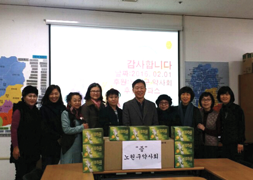 노원구약사회가 지역 어르신 돌봄지원센터를 방문하고, 파스를 지원했다.