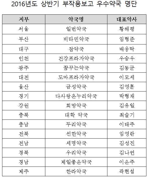 2016년도 상반기에 접수된 부작용 보고건수는 신규 참여약국 141개소를 포함해 총 580개 약국에서 8,091건이 보고됐다. 전년도에 접수된 7,307건에 비해 약 11% 증가했으며, 각 지부별 보고건수와 참여 약국수 역시 꾸준히 증가하는 추세이다.
