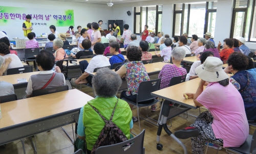 이날 전경준 회장을 비롯해 참여한 이예영, 진혜원, 한백효, 이지혜, 황옥경 약사는 방문한 어르신들 170여명에게 무료투약을 실시했다.