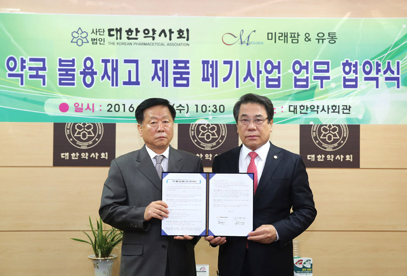 대한약사회(회장 조찬휘)는 7일 미래팜&유통과 약국 내 폐기하지 못하고 보관중인 불용재고 제품에 대한 폐기사업 업무 협약을 체결했다고 밝혔다.