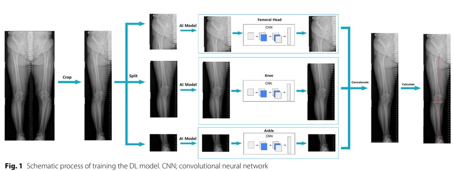 연구팀에 따르면 10,000장이 넘는 하지 방사선 사진을 활용해 딥러닝 모델을 훈련했으며, 이 모델은 하지 방사선 사진을 고관절(hip), 무릎, 발목 등으로 세분화해 분석한 뒤 다시 통합해 판독 결과를 내리는데 단 0.3초 밖에 걸리지 않는다.