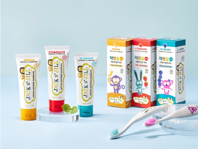잭앤질은 세계 최상위 유기농 인증인 프랑스 '에코서트'(Ecocert) 내추럴 인증을 완제품으로 받은 어린이 치약으로, 미국 농부무(USDA) 유기농 원료 인증, PETA 비건 인증, EWG 그린 등급 원료 함유 인증 등을 받았다고 설명했다.