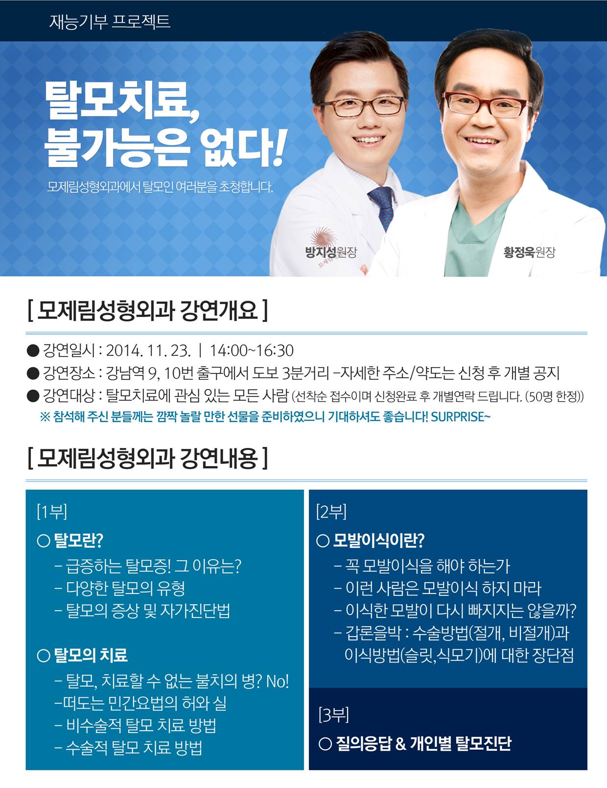 모제림성형외과는 사회공헌 사업의 일환으로 '모제림탈모강좌' 를 연다.