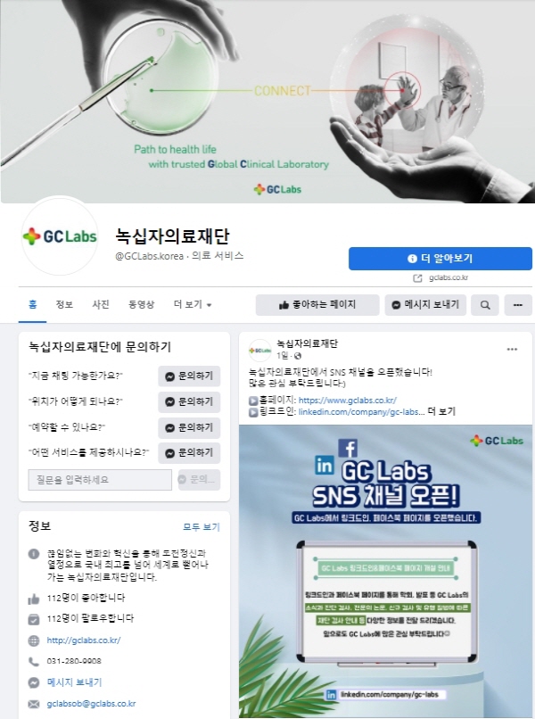 GC녹십자의료재단(이사장 이은희)은 고객과의 소통을 강화하기 위해 공식 페이스북 및 링크드인 페이지를 개설했다고 10일 밝혔다.