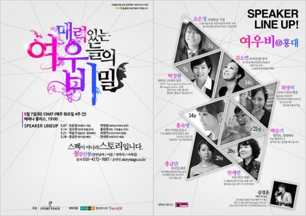 강연문화기획 에이젼시 스토리스테이지는 한국의 다양한 분야의 글로벌 여성리더를 육성하고 더욱 다양하고 참신한 강연 문화를 창조하기 위해 여우비 (매력 있는 여우들의 비밀)라는 제목으로 여성들을 위한 강연을 새롭게 선보일 예정이다.