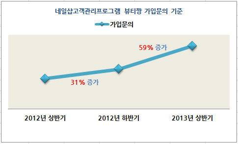 뷰티짱 신규 개통 기준으로 피부숍과 네일숍의 점유율을 비교해보면 2012년 대비 2013년 네일숍 점유율이 5% 가량 소폭 상승하며 네일케어 시장이 확대되고 있음을 입증한다. 실제 네일숍 오픈 후 프로그램을 사용하기 위해 가입 문의한 건수를 비교했을 때 전년동기 대비 90% 이상 증가하는 한편, 지난해 하반기보다는 59% 증가한 수치를 보이는 등 네일숍 오픈이 지속적으로 증가하고 있는 것. 특히 올 3월을 기점으로 증가폭이 크게 나타나고 있으며 앞으로 증가 추세는 지속될 것으로 보인다.