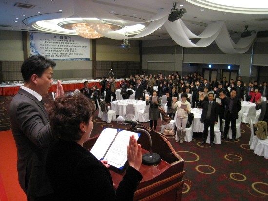 이날 전국 오휘대리점 협의회 회원들은 결의문을 통해 △LG방판 대리점 사장으로 정상적 영업활동을 통해 유통질서를 지킨다 △인터넷 유출관련 대리점의 완전퇴출에 적극 앞장선다 △방판제품의 특판, 온라인, 홈쇼핑 등 타채널 공급중단을 회사에 강력히 촉구한다 △전국오휘대리점협의회 활동에 적극 참여하며 협의회 결정사항을 결사 지지한다 등을 다짐했다.