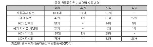 아울러 이미 중국에 수입돼 유통되고 있는 화장품은 해당 품질보증 기간까지만 판매가 가능하다. 아직 중국 내에 유통되지 않은 상품이 CFDA 인증을 획득했으나 새 규범 기준에 미달했을 경우엔 2016년 12월 1일 이전에 새롭게 인증 변경을 신청해야 한다.