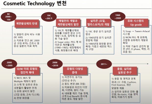 화장품 기술은 2011년쯤 부터 △융합 및 영역과 경계 파괴 △개인 맞춤형 제품 출시 △실리와 실효성 강화 △시술 영역 확대 △미용기기(뷰티디바이스) 접목이 증가하고 있다고 강 박사는 분석했다.