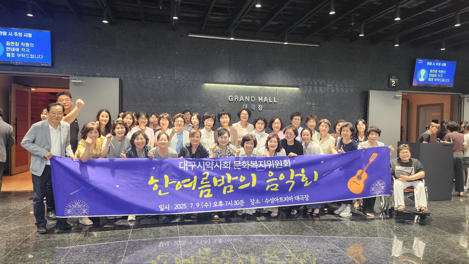 대구시약사회(회장 금병미)는 7월 9일 저녁 7시 30분 수성아트피아에서 회원들의 문화생활 향상을 위한 ‘한여름밤의 음악회’ 문화행사를 개최했다.