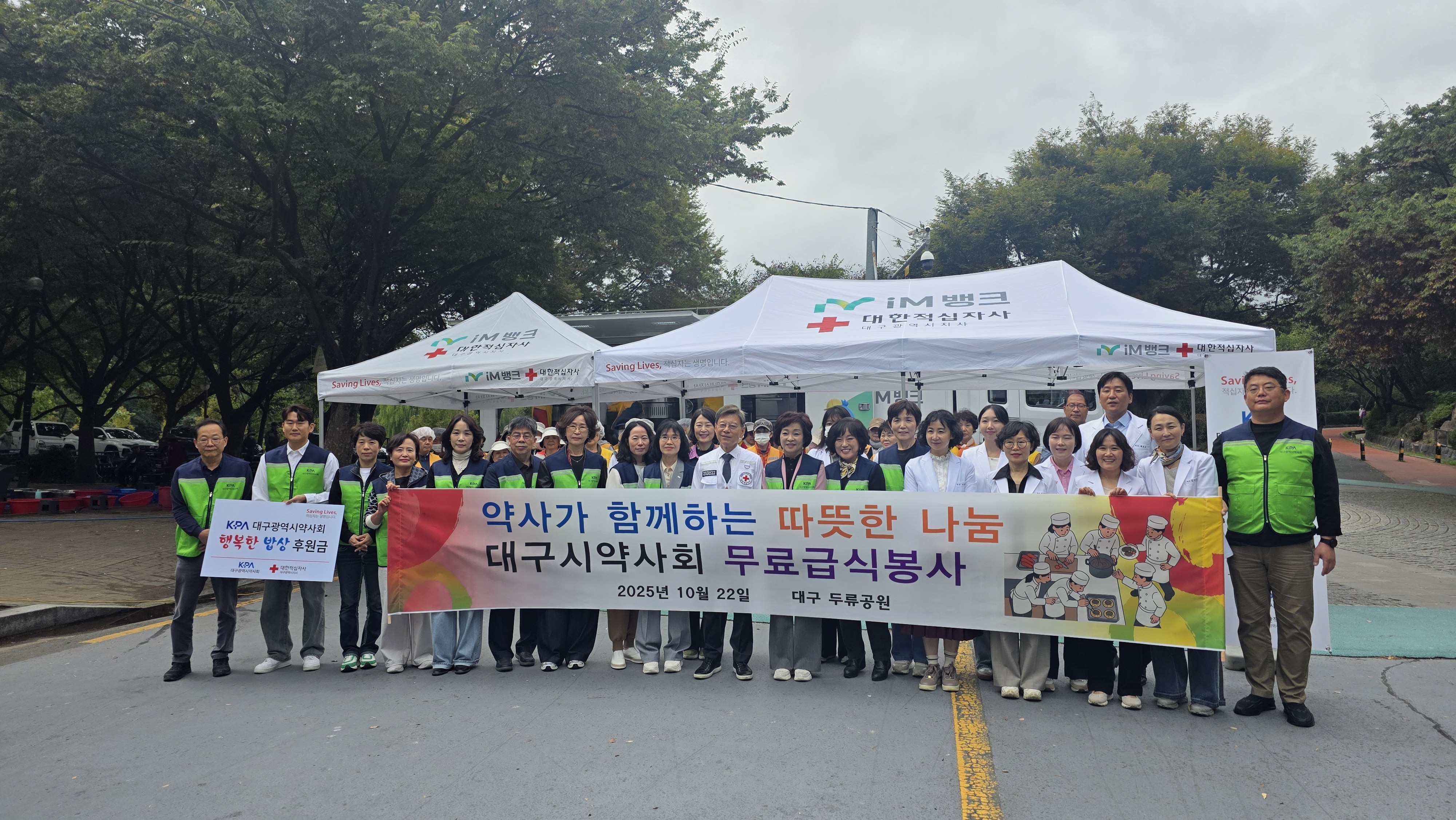 대구광역시약사회(회장 금병미)와 대한적십자사 대구지사(회장 배인호)는 22일, 두류공원에서 결식 장년 및 노년층 1,000여 명을 대상으로 ‘행복한 밥상(무료급식)’ 후원 및 봉사활동을 전개했다고 밝혔다.