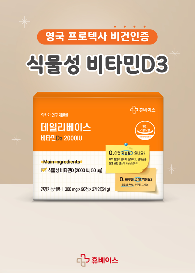 휴베이스 교육제품개발 부문 남태환 이사는 “가을과 겨울은 일조량이 크게 줄어 비타민D가 가장 부족해지는 시기”라며 “이번 신제품은 해조류 유래의 식물성 비타민D3와 삼키기 쉬운 작은 정제를 적용해 자연성·안전성·편의성을 모두 강화했다”고 밝혔다.