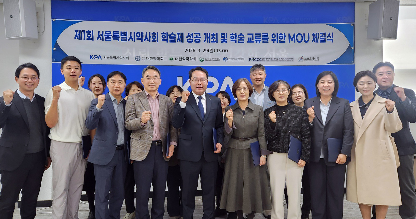 한편 ‘2026 제1회 서울특별시약사회 학술제’는 오는 5월 31일 서울 코엑스 마곡 컨벤션센터에서 개최된다. 학술제에 앞서 연구논문, 포스터, 임상연구계획서, 에세이 공모가 진행 중이며, 접수는 4월 30일까지로 총 1,000만 원 규모의 상금과 해외 학회 참가 지원이 제공된다. 자세한 사항은 서울특별시약사회 홈페이지를 통해 확인할 수 있다.