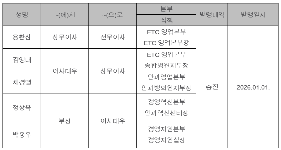 지엠헬스케어가 2026년 1월 1일자로 승진인사를 단행했다.