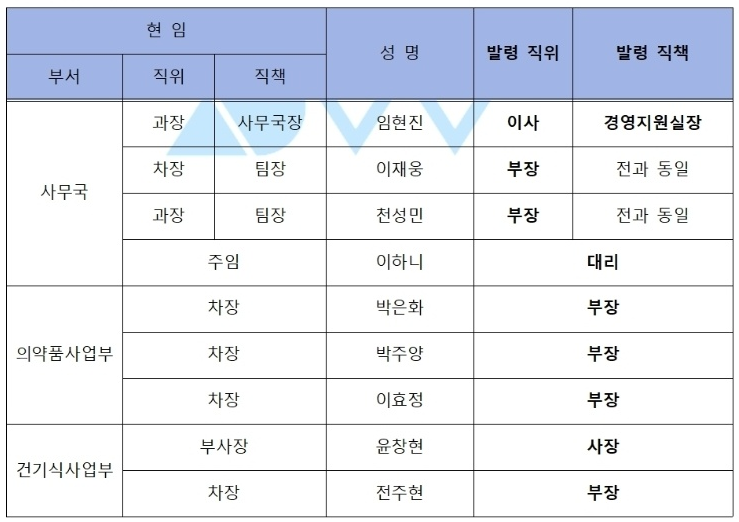 - 차장대우 : 우진아(임상), 허용(물류), 최준현(개발기획)