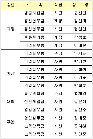 ▲ 차장 승진: 김정민(영업기획팀) 외 25명