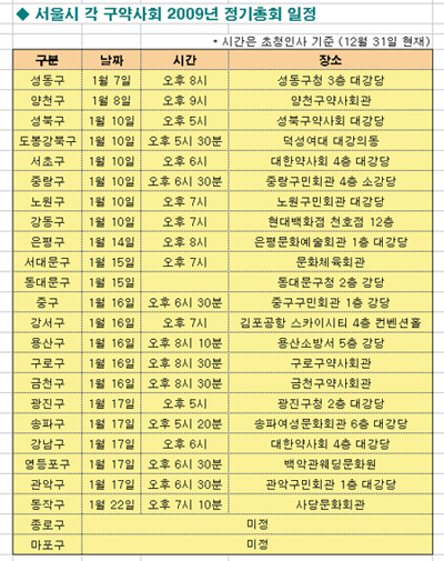 2009년 서울시 22개 구약사회 정총이 7일 부터 시작된다.