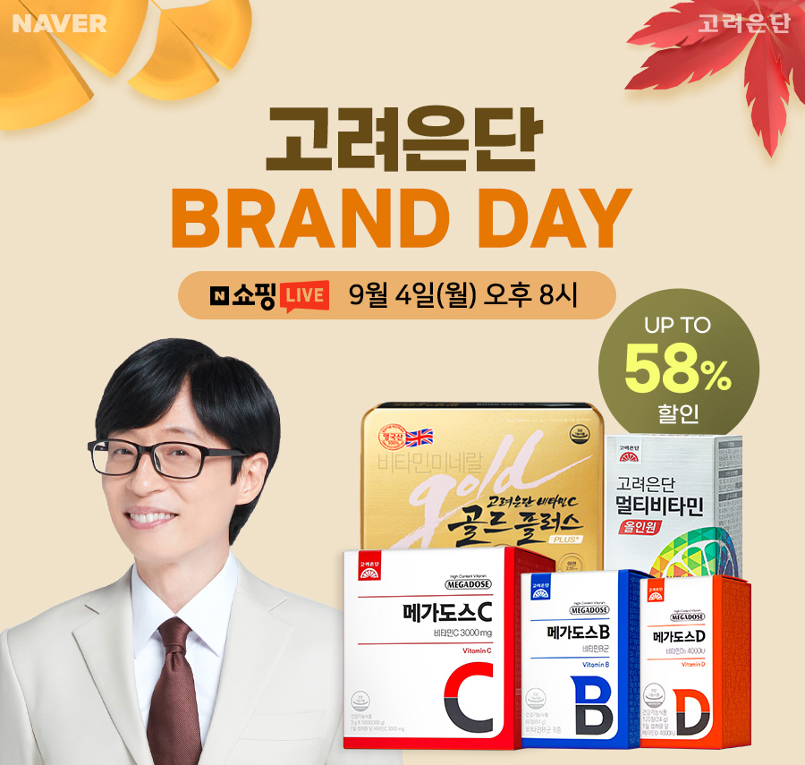 브랜드데이 당일 오후 8시에는 네이버 쇼핑라이브에서 △메가도스C 비타민C 3000mg △메가도스B 비타민B군 △메가도스D 비타민D3 4000IU △멀티비타민 올인원 △골드플러스 등 고려은단 인기 제품들을 소개할 예정이며, 방송 중 구매 인증과 제품 기대평을 댓글로 남기면 추첨을 통해 ‘고려은단 럭키박스’를 받을 수 있다.