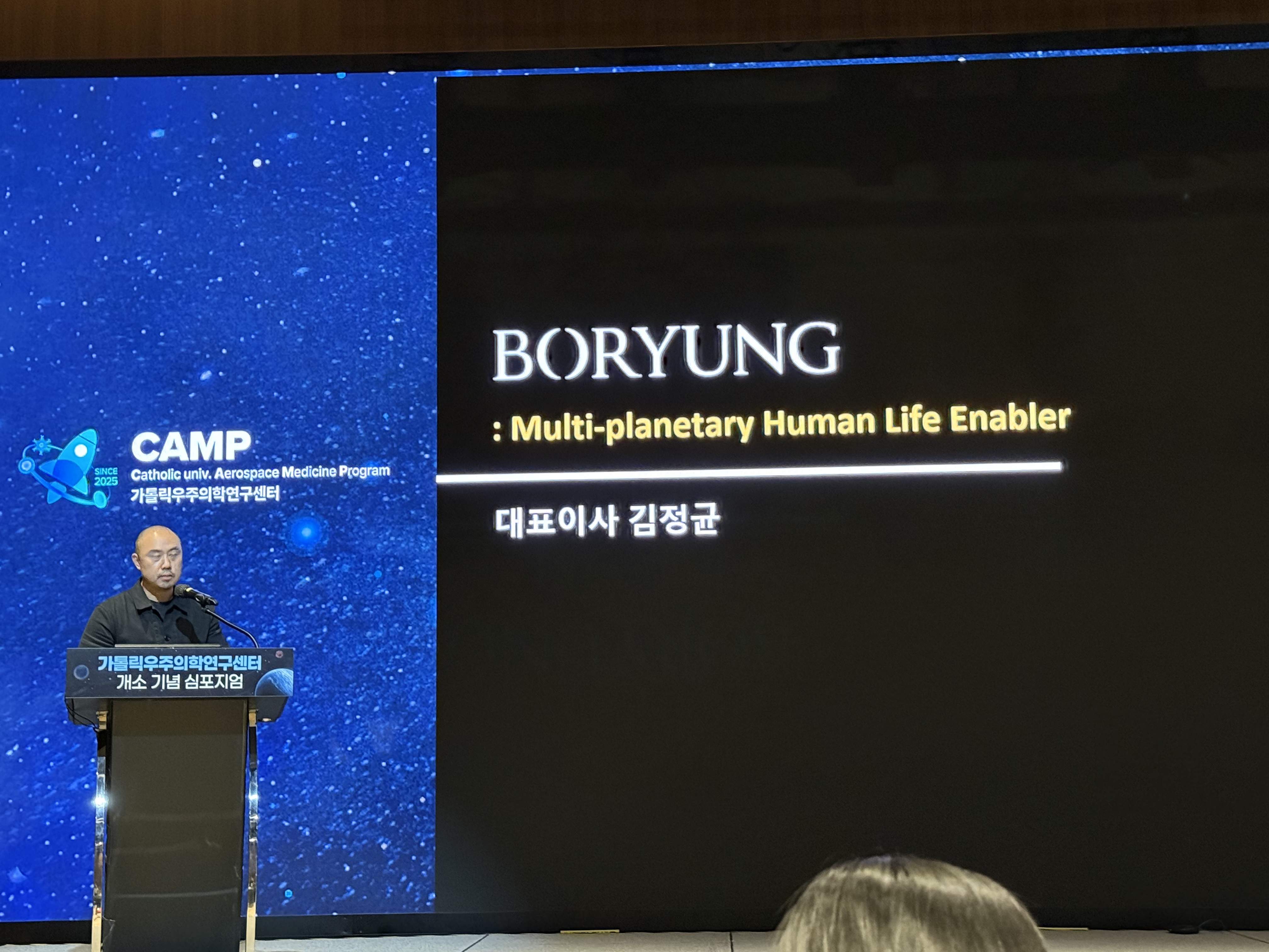 가톨릭대학교 가톨릭중앙의료원이 국내 우주의학 연구를 선도할 전문 연구기관인 가톨릭우주의학연구센터를 공식 출범시키고 16일 가톨릭대학교 옴니버스 파크 컨벤션홀에서 열린 개소 기념 심포지엄에서 김정균 대표는 회사의 비전을 'Multi-planetary Human Life Enabler(우주로 확장하는 인류의 삶)' 으로 소개하며, 가톨릭우주의학연구센터가 이 역할을 함께 해나갈 핵심 파트너임을 강조했다.