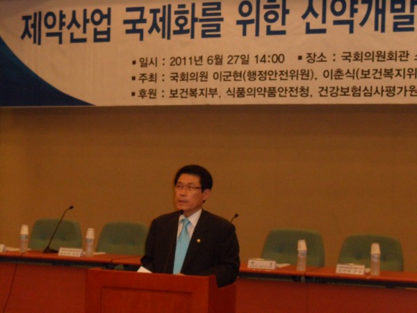 세미나를 주최한 이군현 의원은 인사말을 통해 “자원이 부족한 우리나라에서 인력자원을 활용한 산업 발전이 중요하다”며 “ 앞으로 국내산업을 이끌어 나갈 산업으로는 신약개발을 통한 국내 제약산업의 국제화가 중요한 역할을 하게 될 것으로 이를 장려하기위한 정책지원이 필요하다”고 말했다.