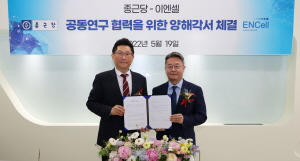 종근당(대표 김영주)은 19일 서울 충정로 종근당 본사에서 세포∙유전자치료제 위탁개발생산(CDMO) 및 차세대 줄기세포치료제 개발 기업 이엔셀과 전략적 투자 및 글로벌 혁신신약 공동연구를 위한 전략적 양해 각서(MOU)를 체결했다.