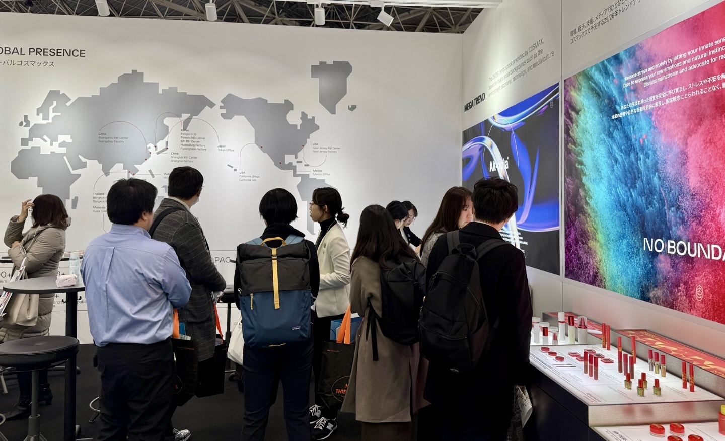 코스맥스는 올해 전시에서 ‘Heart & Seoul(한국의 아름다움이 모여드는 중심, 서울의 반짝이는 고동)’을 주제로 K-뷰티 트렌드 섹션을 따로 구축했다. 일본에서 인기가 높은 쿠션 및 립 카테고리 제품을 전진 배치해 눈길을 끌었다.