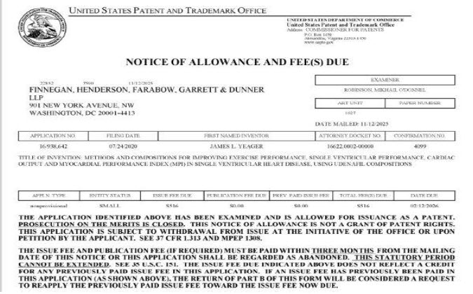 메지온에 따르면 이번 허가된 특허는 연령에 관계없이 폰탄 환자에게 유 데나필을 하루 두 번 경구 투여해 운동 능력을 향상시키는 방법에 대한 광범위한 사용 방법 권리 범위를 포함하며, 심폐운동검사심폐운동검사(CPET) 지표에 대한 종속적 권리 범위도 포함돼 있다.