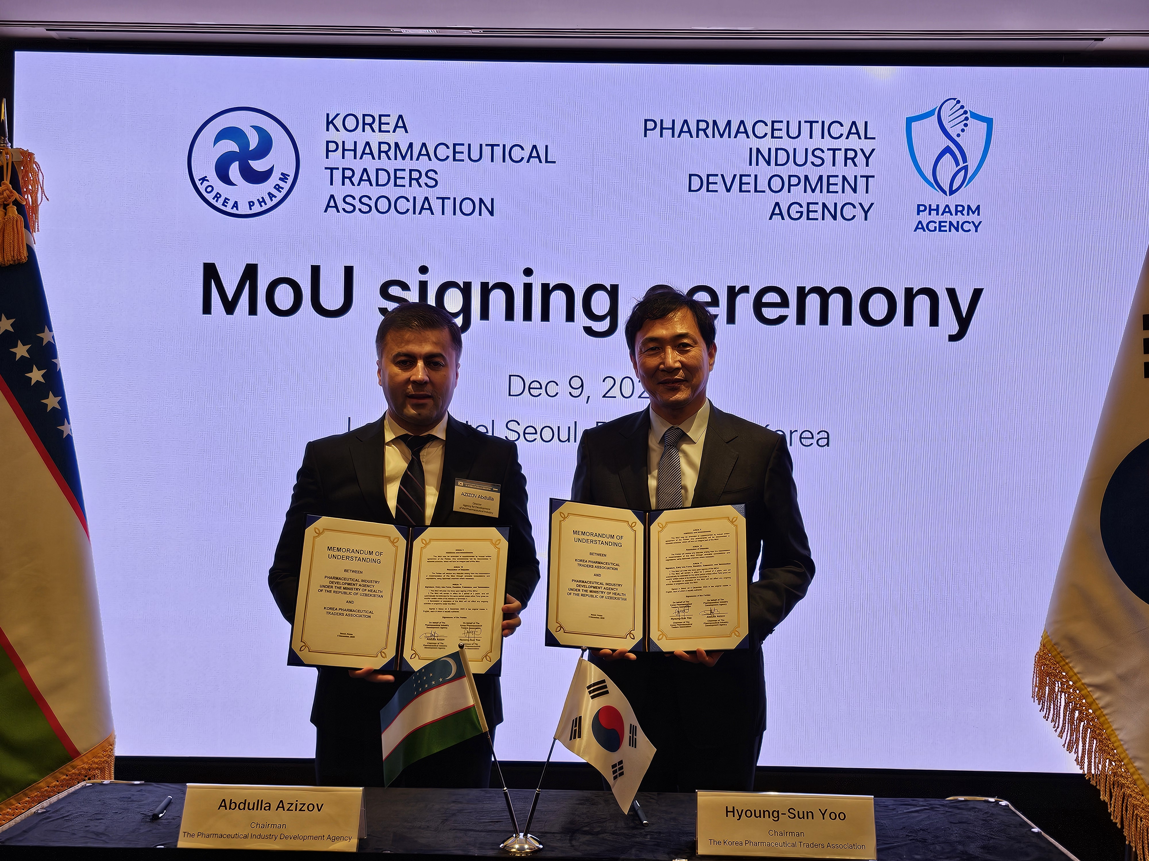 한국의약품수출입협회(회장 류형선, 이하 의수협)은 12월 9일 우즈베키스탄 보건부 제약산업발전청(Pharmaceutical Industry Development Agency, 이하 PIDA)과 ‘의약품 및 화장품 산업 발전을 위한 양해각서(MOU)’를 체결했다.