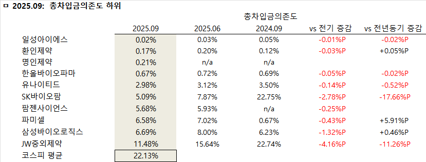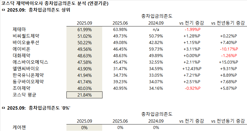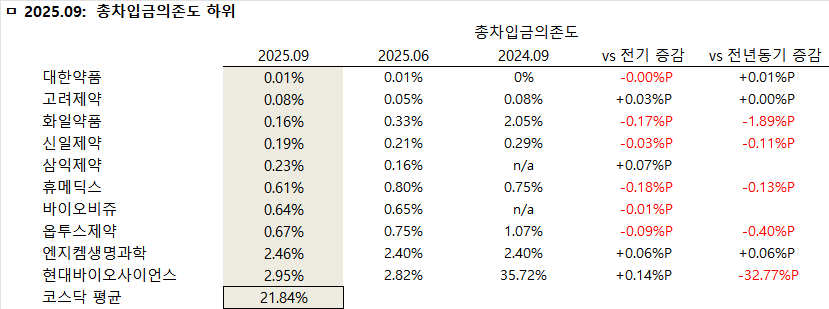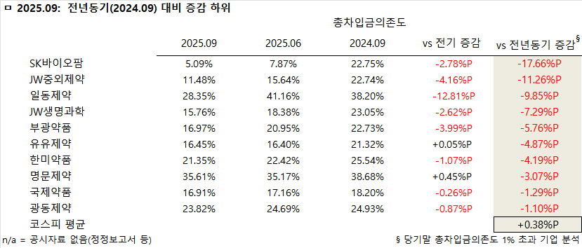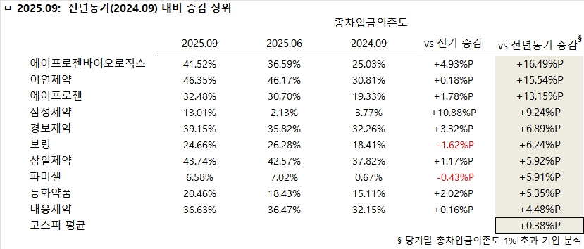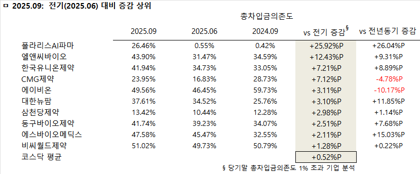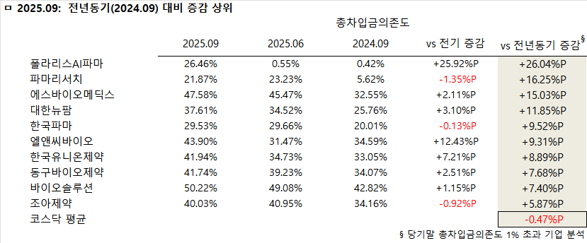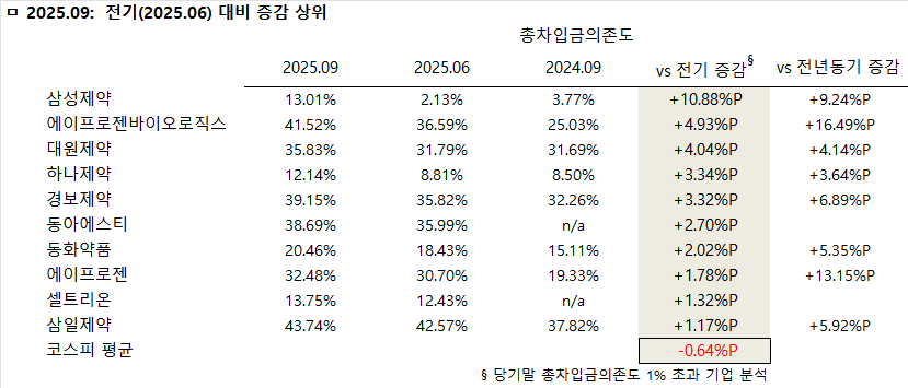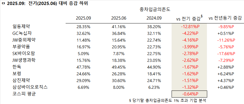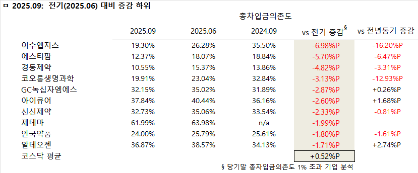 | 4 | 상장 제약바이오 25년 3Q 총차입금의존도 평균 21.98%...코스피>코스닥 |