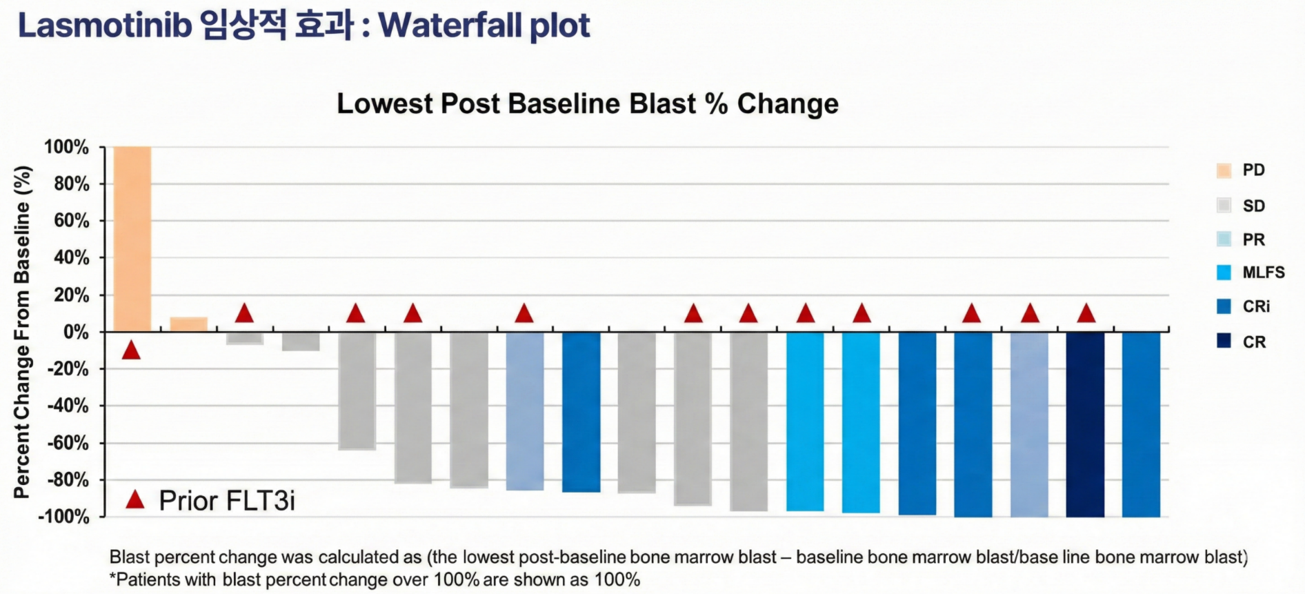 비임상 데이터와 임상 1상에서 관찰된 치료 반응 신호를 종합하면, 라스모티닙은 기존 FLT3 억제제 치료 이후 재발하거나 불응한 환자군을 대상으로 한 후속 치료 옵션으로 충분한 경쟁력을 가질 수 있을 것으로 전망된다.