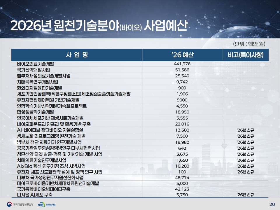 | 6 | [2026 R&D①]정부 예산 35조5000억 ‘역대 최대’…"제약바이오에 열리는 기회" |