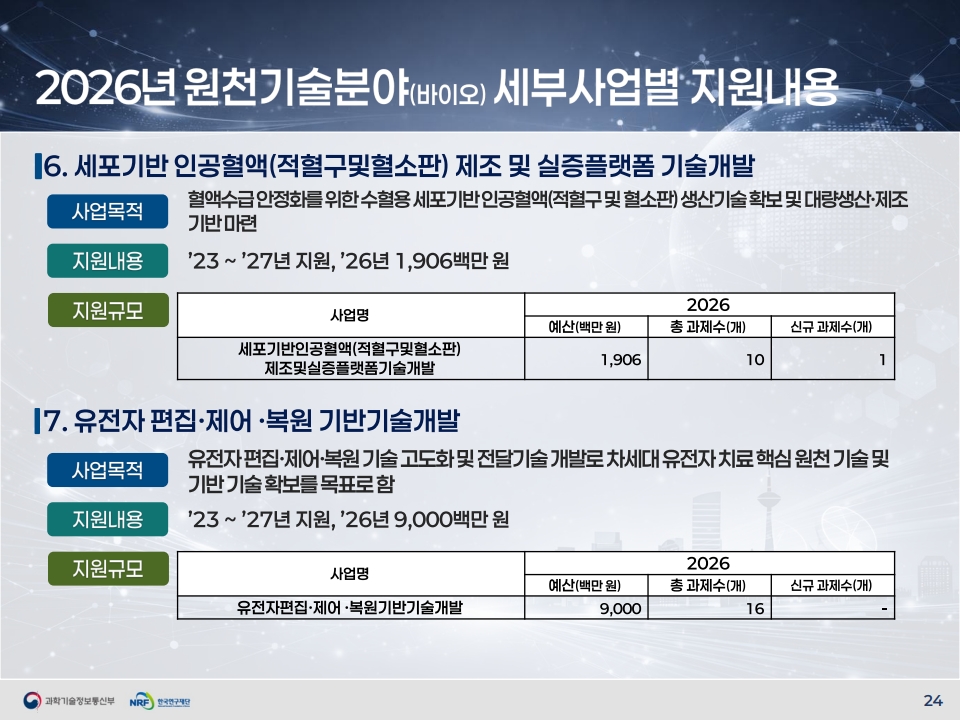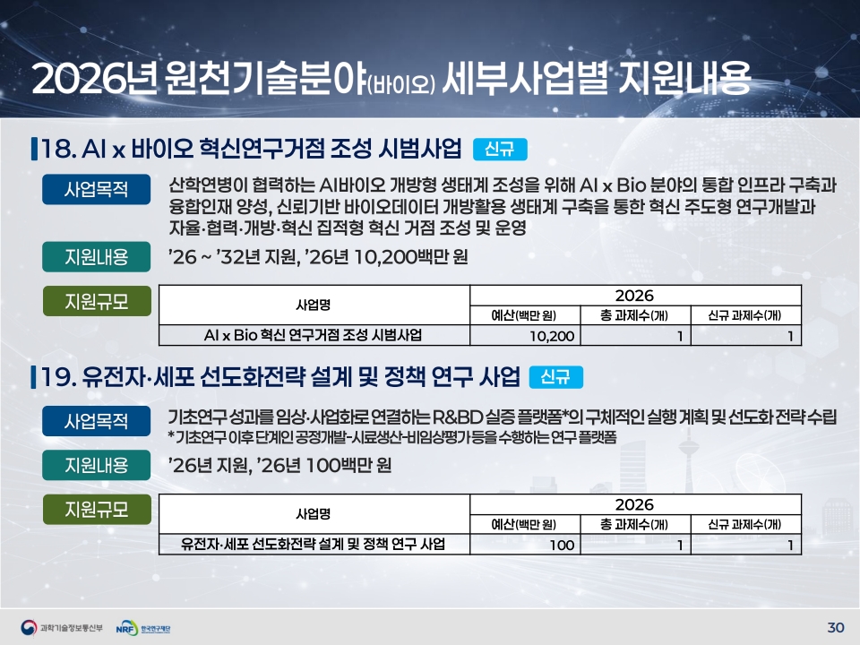 바이오 원천기술 분야, 23개 사업 총 7458억원