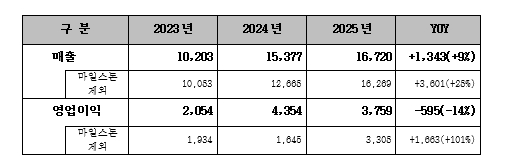 26일 삼성에피스홀딩스(대표이사 김경아 사장) 실적발표에 따르면, 삼성바이오에피스는 2025년 연간 매출 1조 6,720억원, 영업이익 3,759억원을 기록하며 매출 기준 연간 최대 실적을 달성했다.
