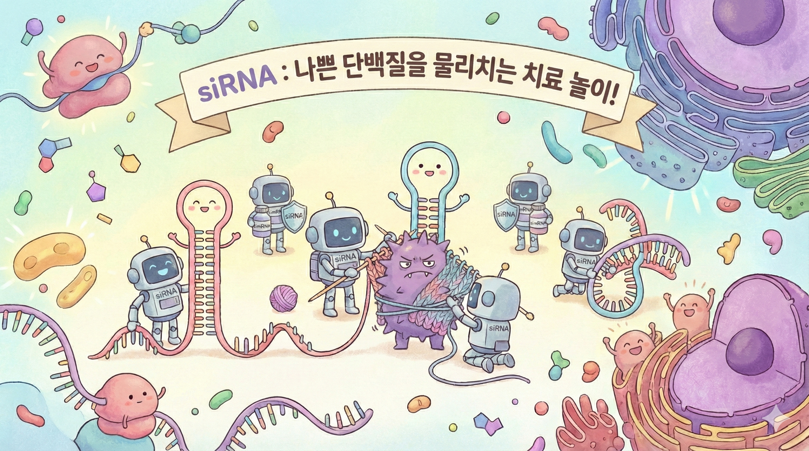 쉽게 말해, 기존 치료제가 스마트폰에 계속 울리는 알람을 그때그때 끄는 방식이라면, siRNA는 문제를 일으키는 애플리케이션 자체를 비활성화하는 접근이다.