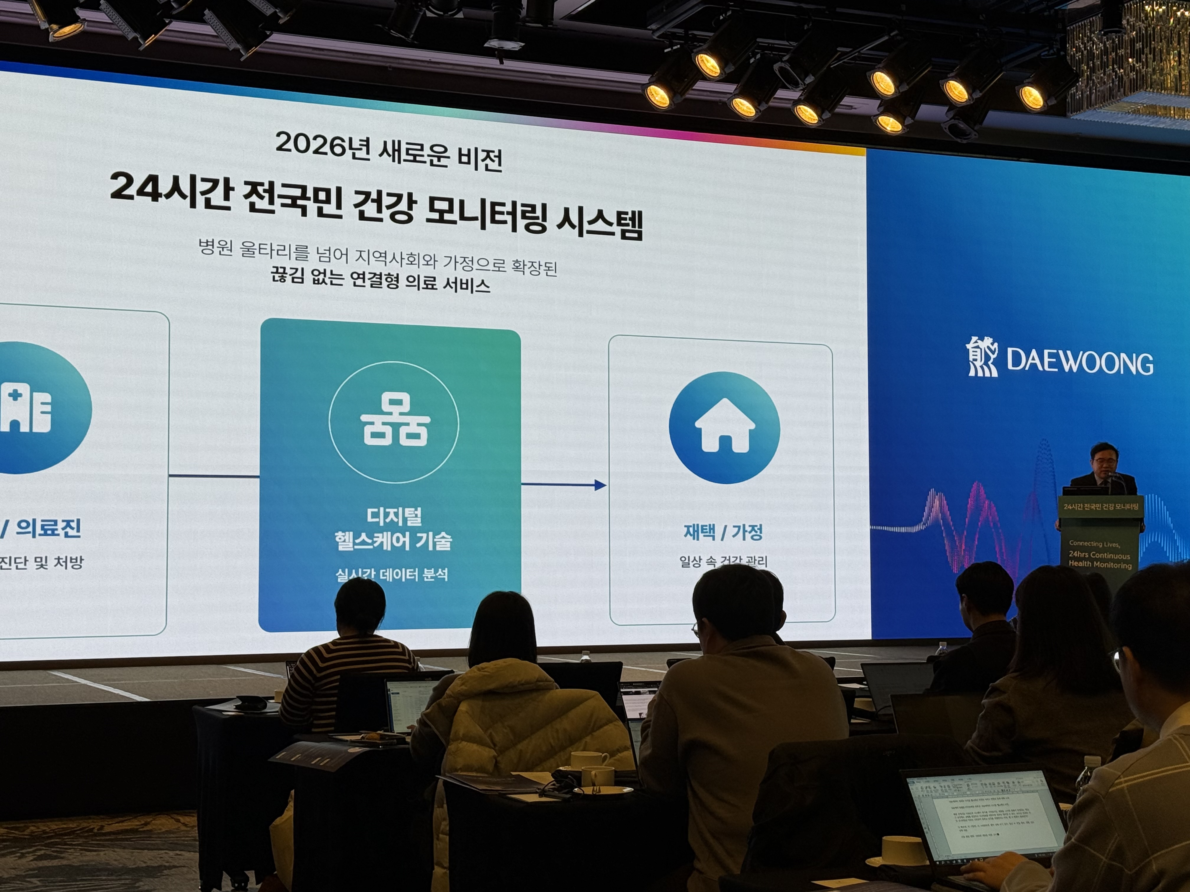 박형철 대웅제약 ETC병원본부장은 "환자가 병원을 나서는 순간부터 돌봄이 단절되는 현실을 극복하기 위해 연결된 시스템이 필요하다"며 "2026년을 기점으로 병원과 지역사회, 가정을 하나로 잇는 모니터링 시스템을 제시하고자 한다"고 밝혔다.