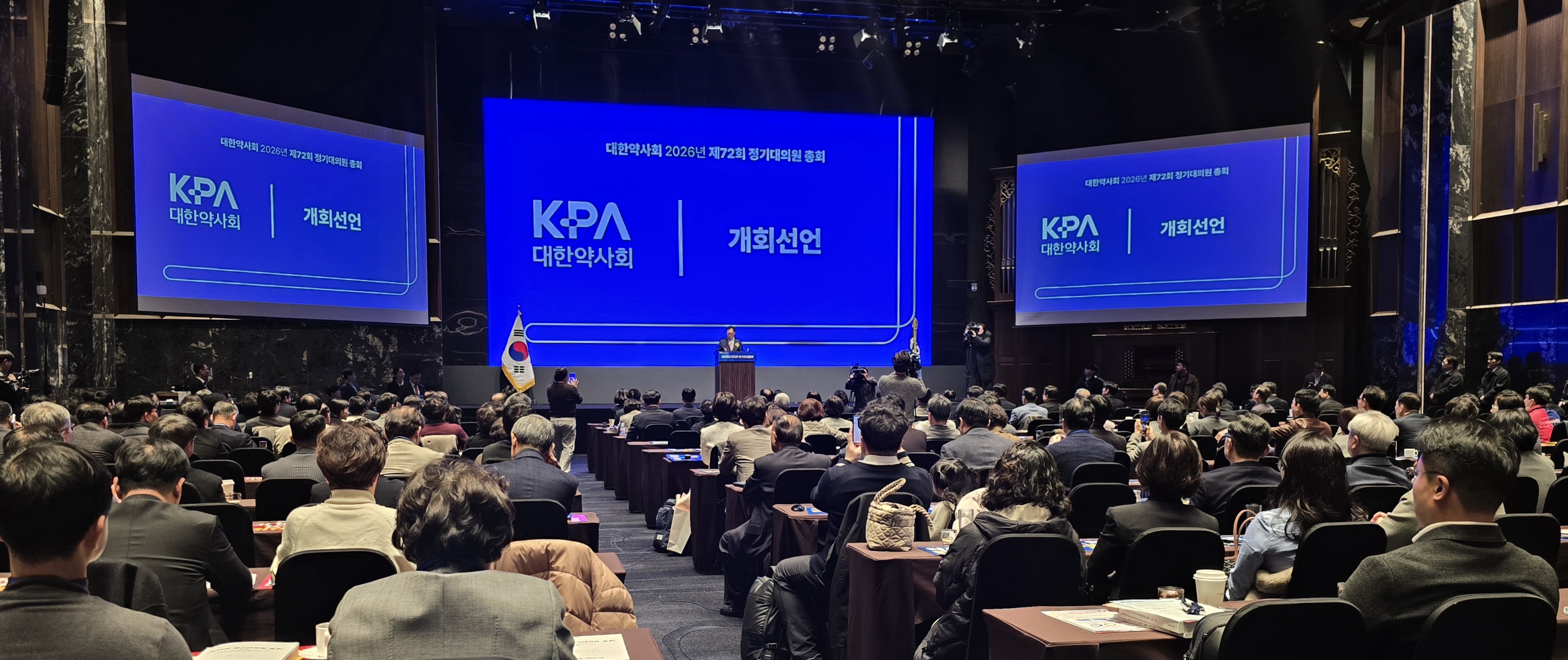 대한약사회가 26일 오후 서울 서초구 엘타워 7층 그랜드홀에서 제72회 정기대의원총회를 열고 창고형 약국 확산과 한약사 문제, 성분명 처방 도입 등 직능 현안 해결을 위한 입법적 대응을 강조했다.