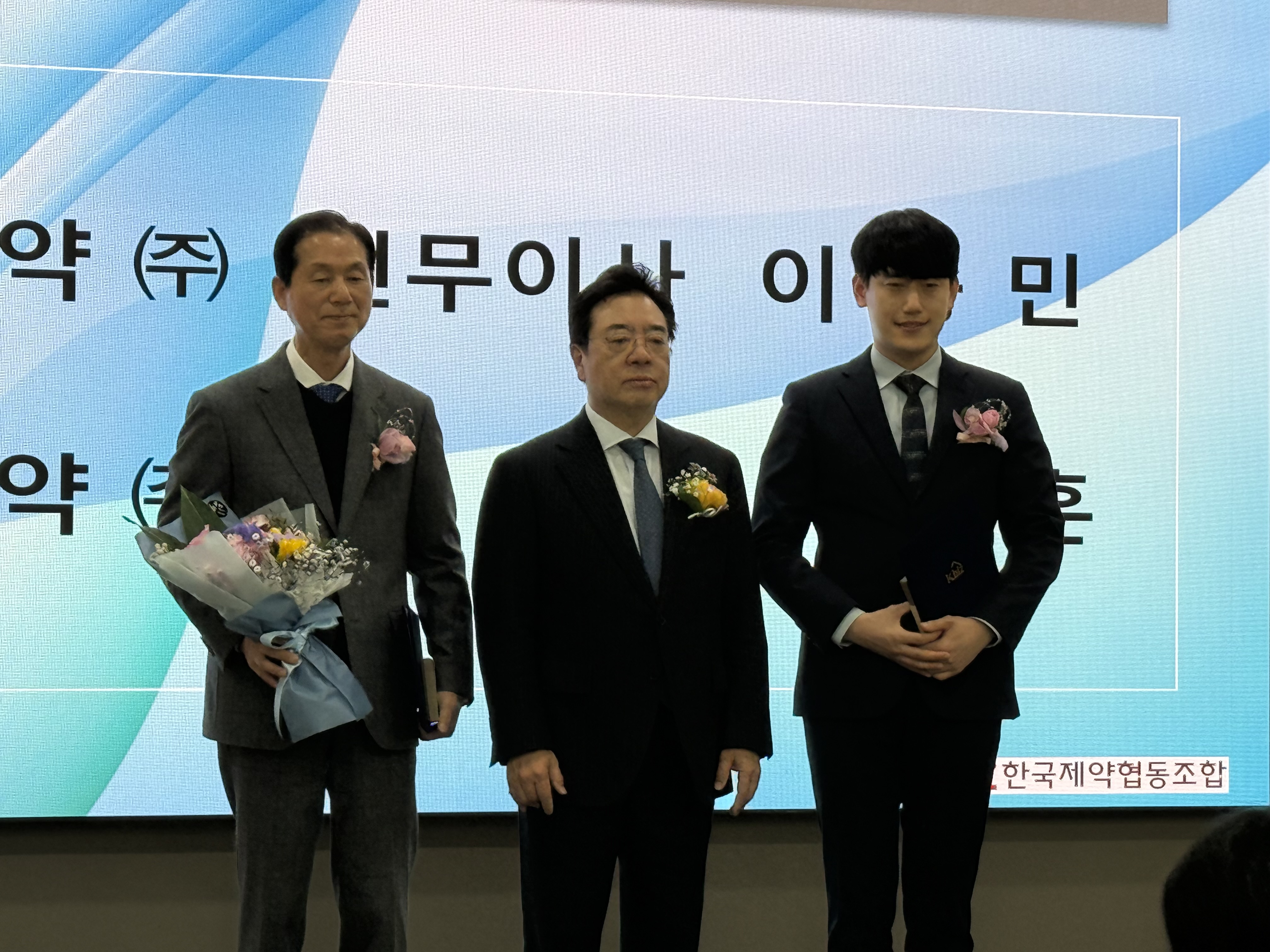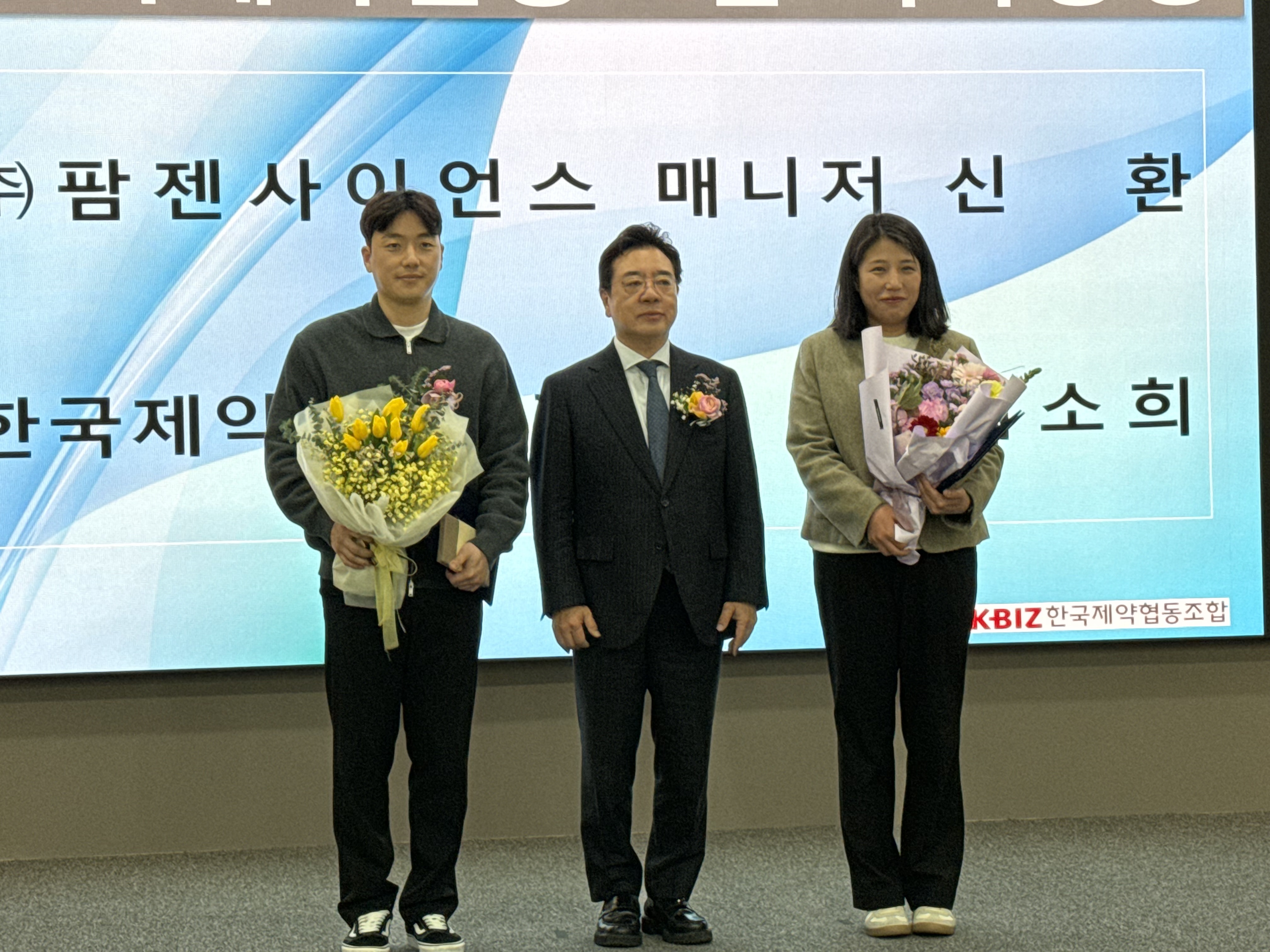 ▲ 한국제약협동조합 이사장 표창: 신환 (주)팜젠사이언스 매니저, 여소희 한국제약협동조합 대리