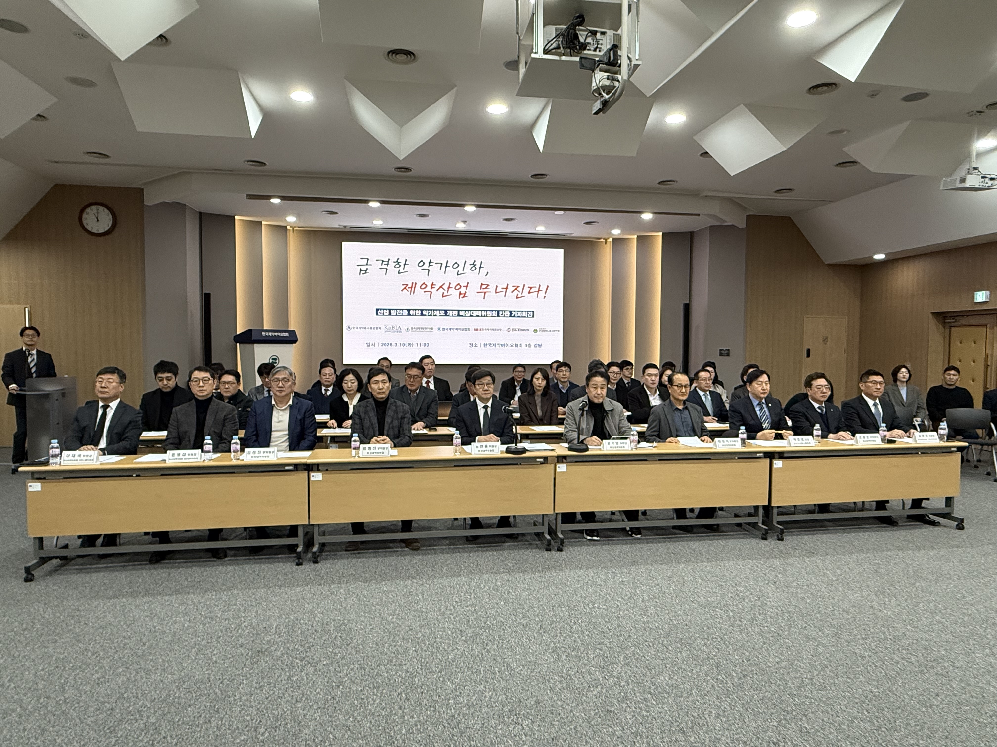 10일 오전 11시, 한국제약바이오협회 등 5개 제약바이오 단체와 한국노총 등 양대 노동조합이 참여한 '산업발전을 위한 약가제도 개편 비상대책위원회(이하 비대위)'는 서울 방배동 제약바이오협회관에서 긴급 기자회견을 열고, 정부를 향해 민·관 공동연구 착수를 공식 제안했다.