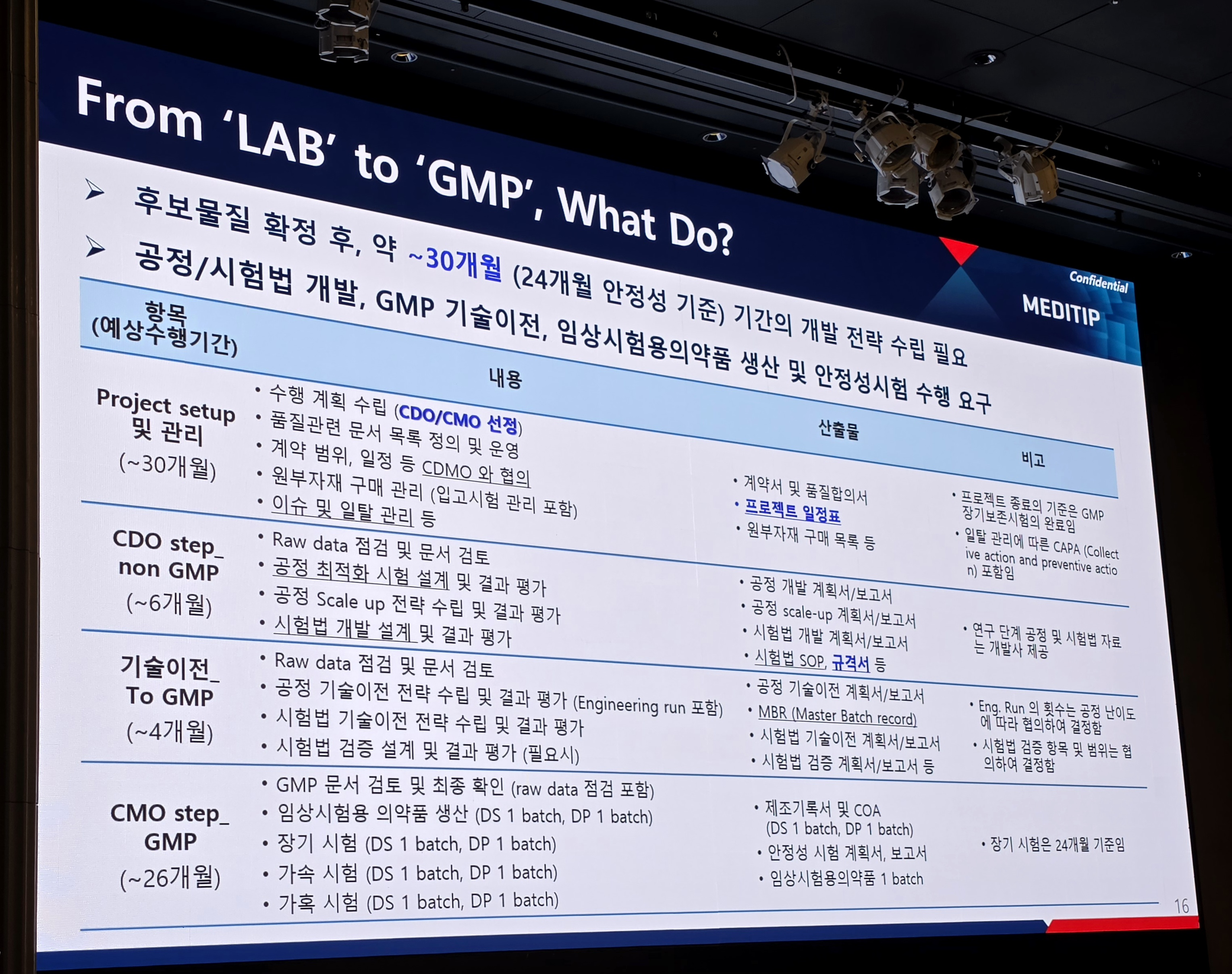 김 상무는 후보물질 확정 이후 임상시험 진입 준비까지 30개월가량 개발 전략이 필요하다고 설명했다.