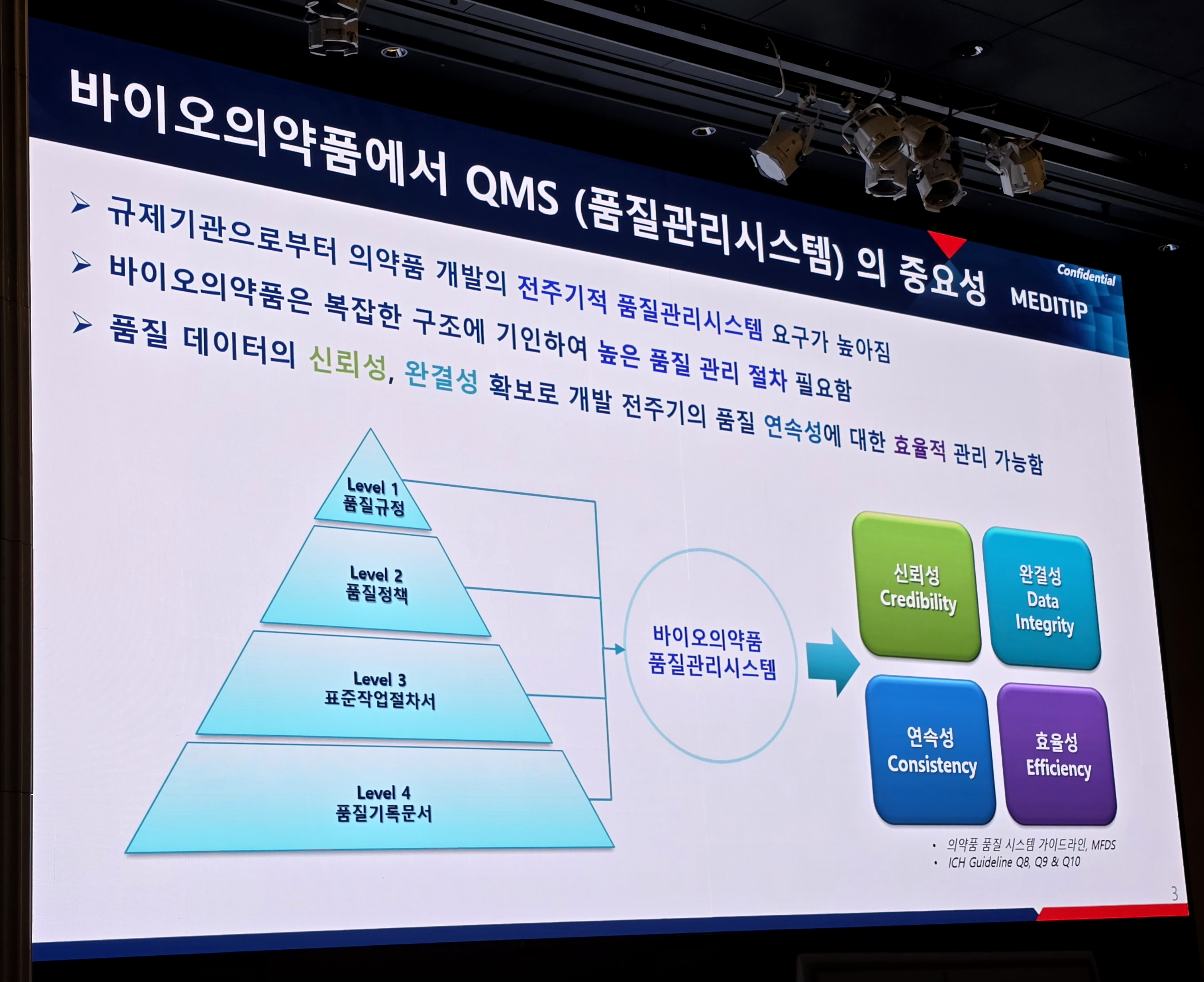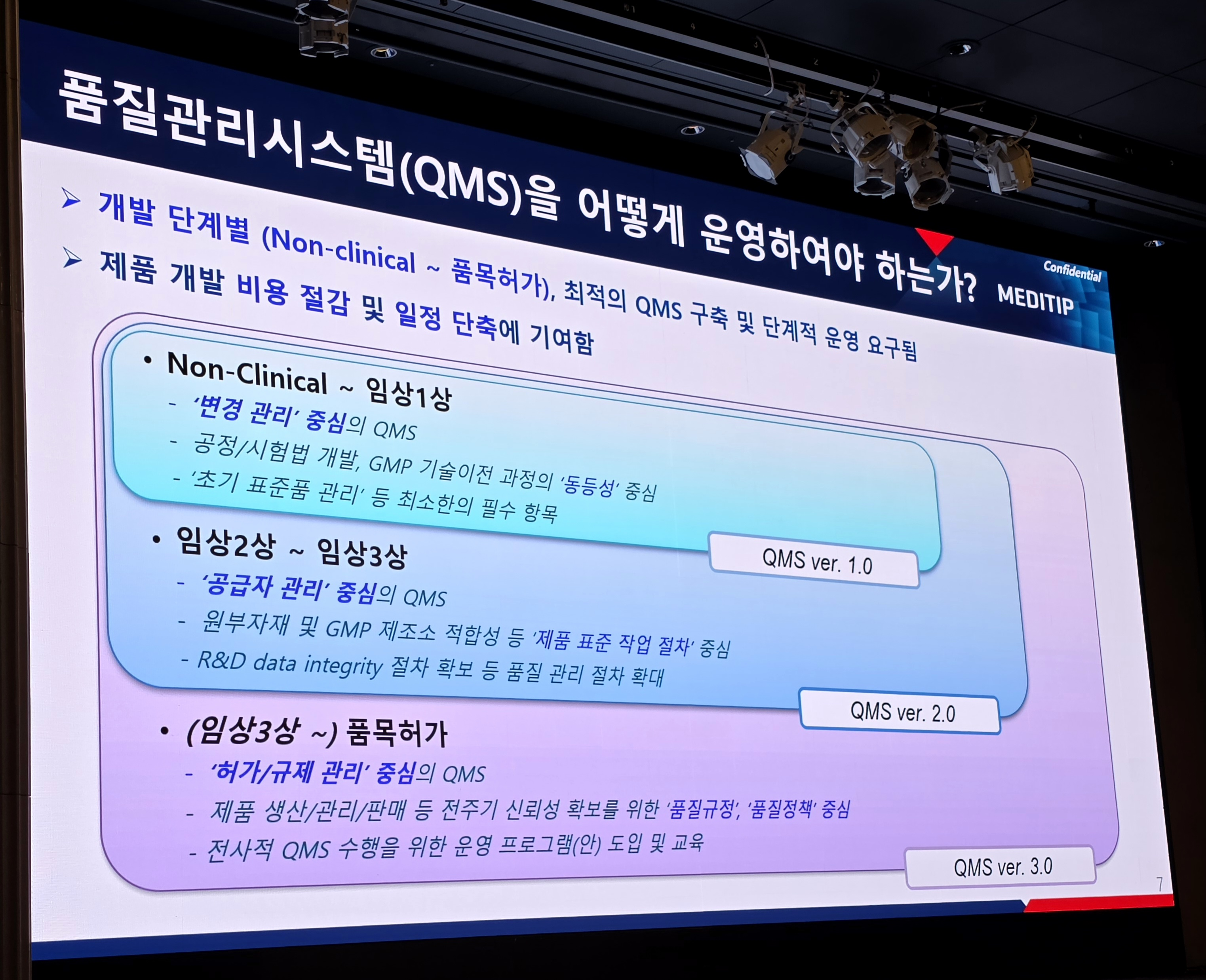 그는 “초기 바이오벤처가 모든 품질 시스템을 한 번에 완벽하게 구축하는 것은 현실적으로 어렵다”며 “개발 단계에 맞춰 QMS 수준을 단계적으로 확장하는 전략이 필요하다”고 말했다.